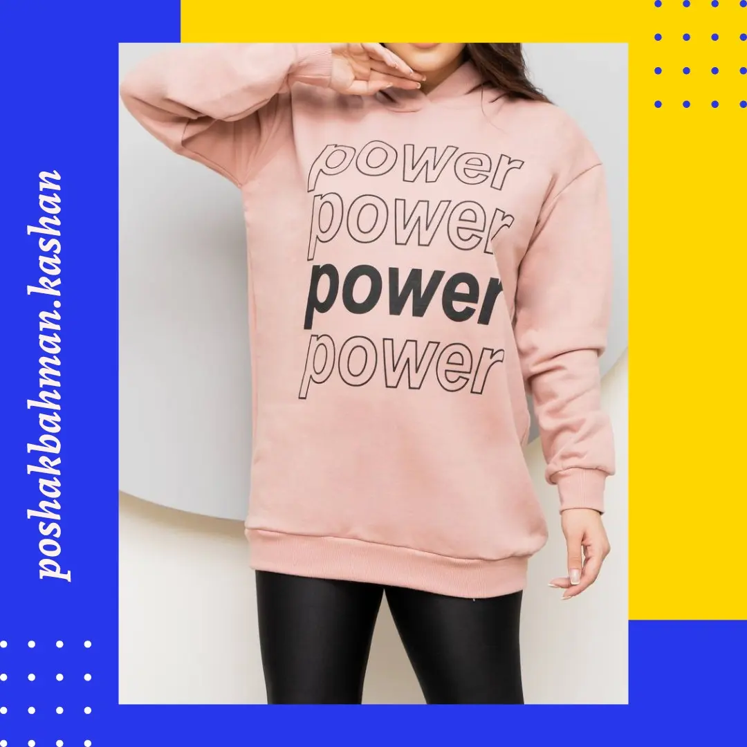 🔵 بلوز هودی کلاهدار (بدون جیب) تو کرکی پایین و سر آستین کِشباف چاپ POWER 🔥 با تنخور بسیار شیک