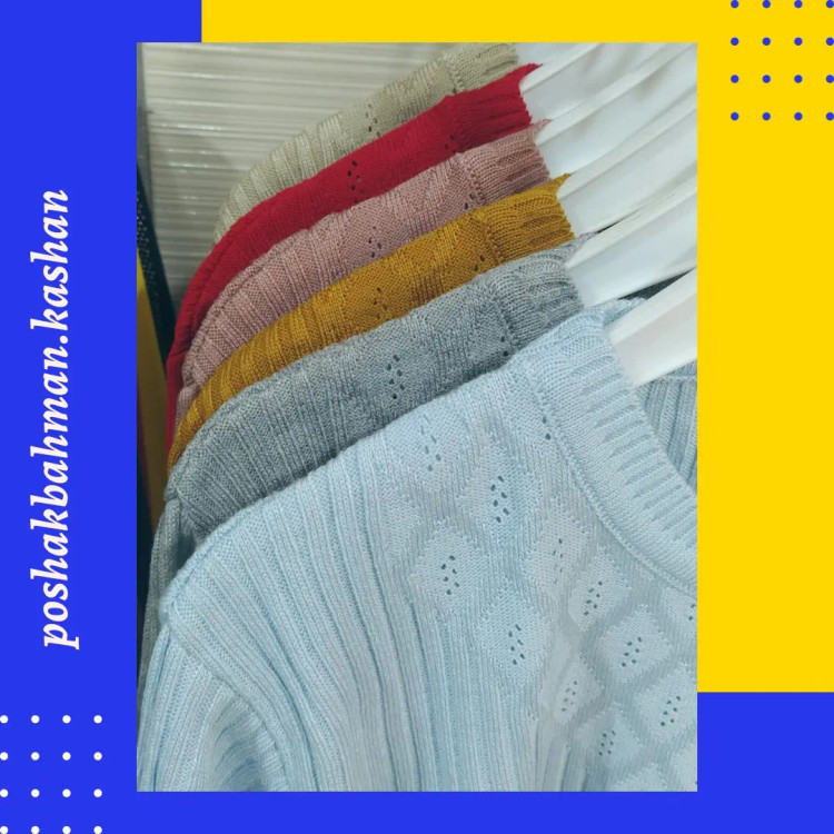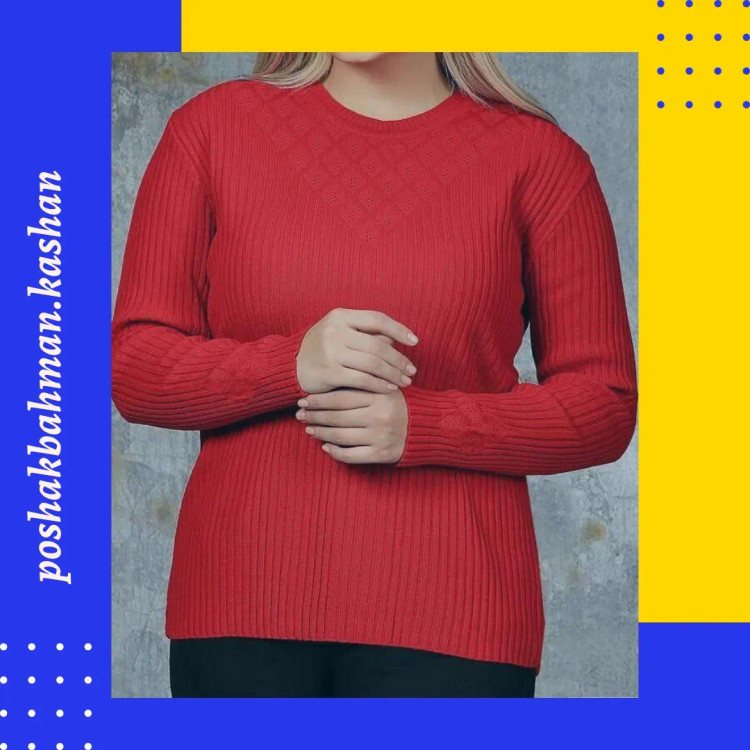 بلوز زنانه دخترانه بافت جنس نخ باتو طرح خطی لوزی با رنگ بندی و تنخور بسیار شیک
