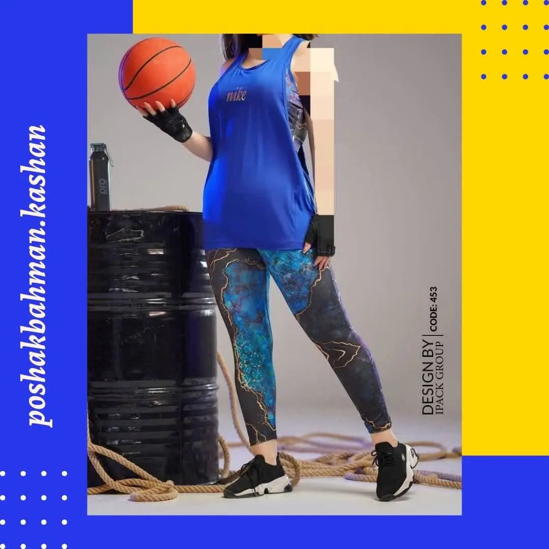 ست زنانه دخترانه سه تیکه کاور نیم تنه لگ جنس آیس کره ای اعلا چاپ نایک بسیار نرم و لطیف با کشسانی و تنخور عالی