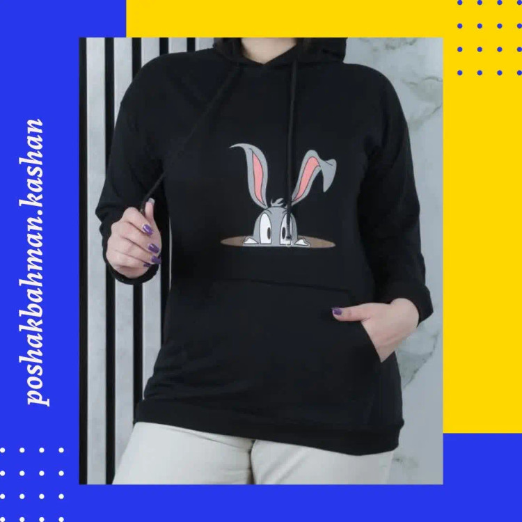 هودی زنانه دخترانه جنس دورس دو نخ پنبه چاپ خرگوش کلاه بنددار با تنخور دوست داشتنی