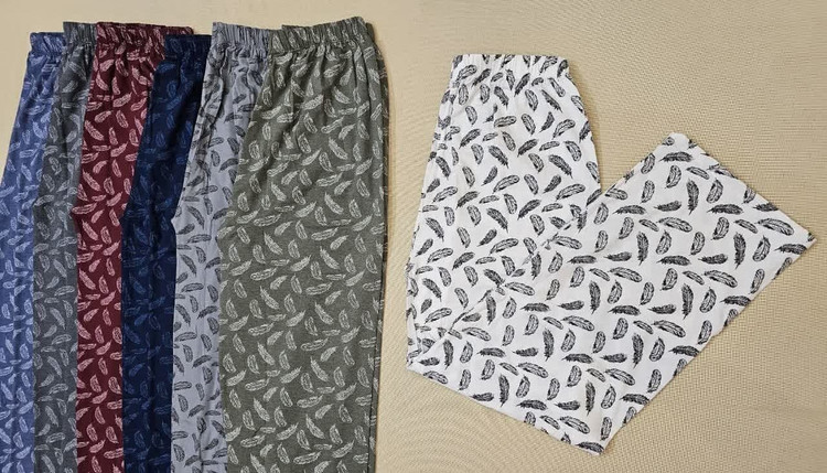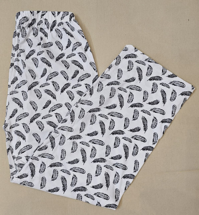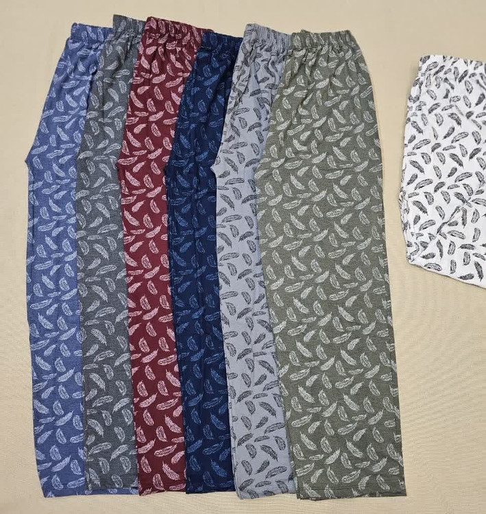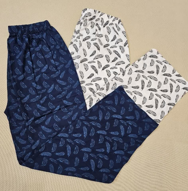 شلوار زنانه دخترانه راحتی راسته جنس نخ پنبه لاکرادار کمر کش تمام چاپ پر