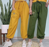 شلوار زنانه دخترانه جنس کنفی نخی (الیاف طبیعی) با تنخور شیک و راحت