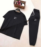 ست تیشرت اسلش جیب دار کمر کش بند دار چاپ دو نایک با رنگ بندی و تنخور بسیار شیک
