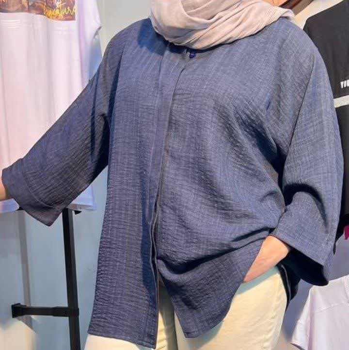 🔵 تونیک مانتویی قواره بزرگ یقه شکاری،دکمه مخفی،آستین (سه ربع) کیمونو،سر آستین پاکتی،با تنخور ساده و شیک 😍