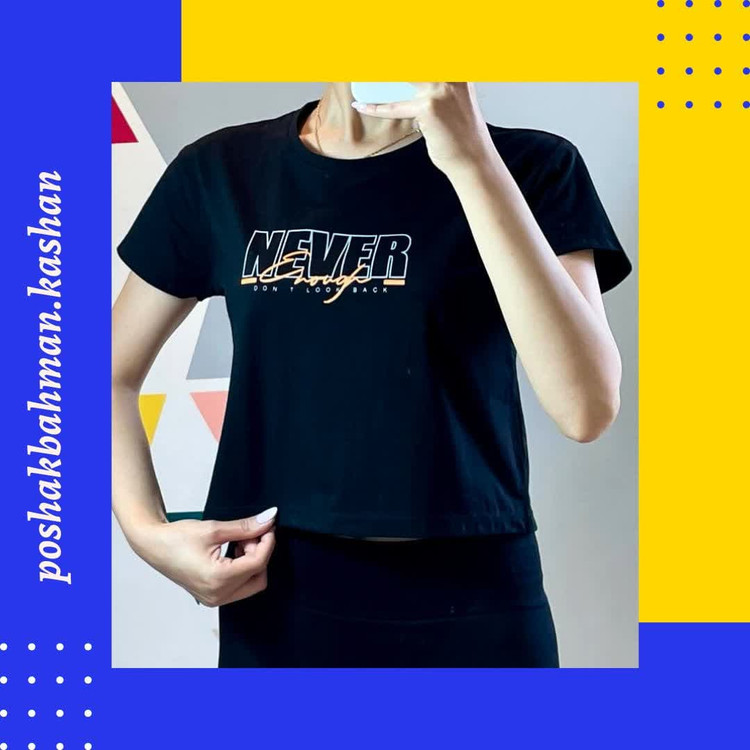 🔵 تیشرت کراپ چاپ (NEVER) با تنخور ساده و شیک