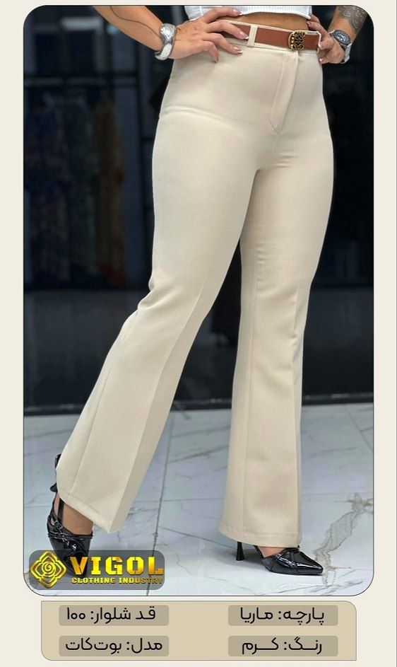 شلوار زنانه دخترانه بوت کات جنس ماریا کمری زیپ و دکمه برند ویگل با تنخور بسیار سبک راحت و شیک