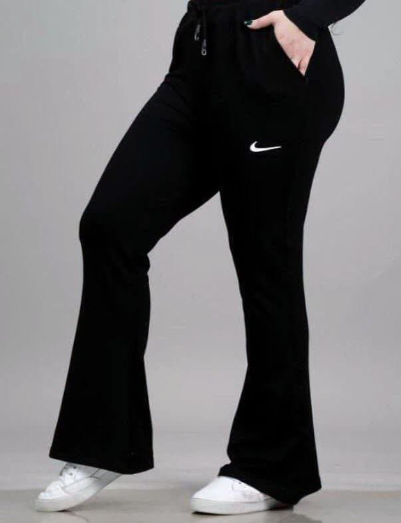شلوار زنانه دخترانه بوت کات جنس گلکسی پنبه جیب دار کمر بند دار چاپ نایک با تنخور بسیار شیک و دوست داشتنی