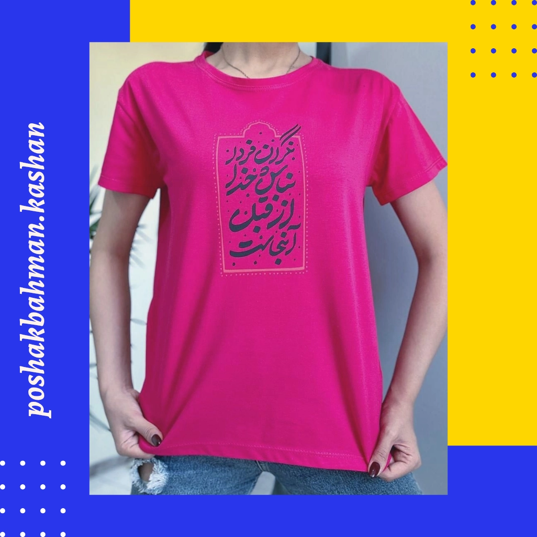 تیشرت زنانه دخترانه جنس سوپر نخ پنبه نرم و لطیف چاپ فونت فارسی با تنخور خوشگل