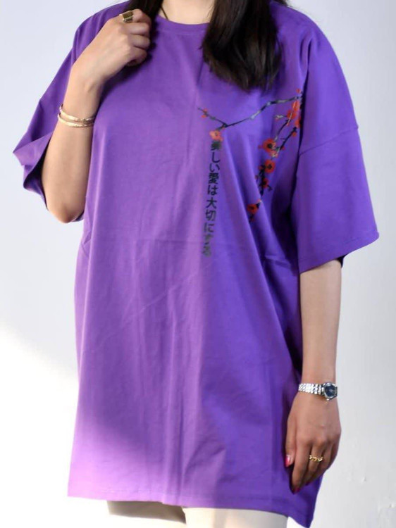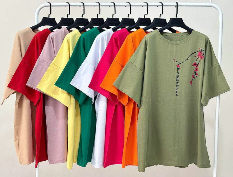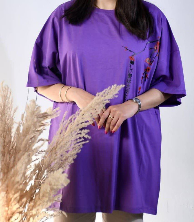 تیشرت زنانه دخترانه لانگ لش قواره بزرگ جنس سوپر نخ پنبه نرم و لطیف با تنخور ساده و دوست داشتنی
