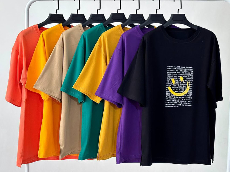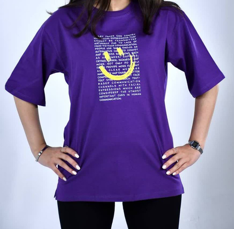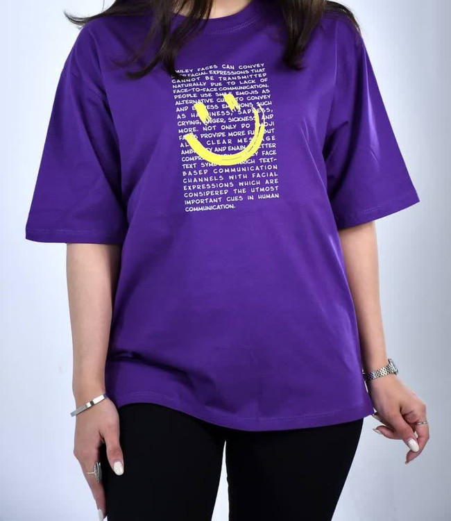 🔵 تیشرت لانگ لش قواره بزرگ چاپ لبخند