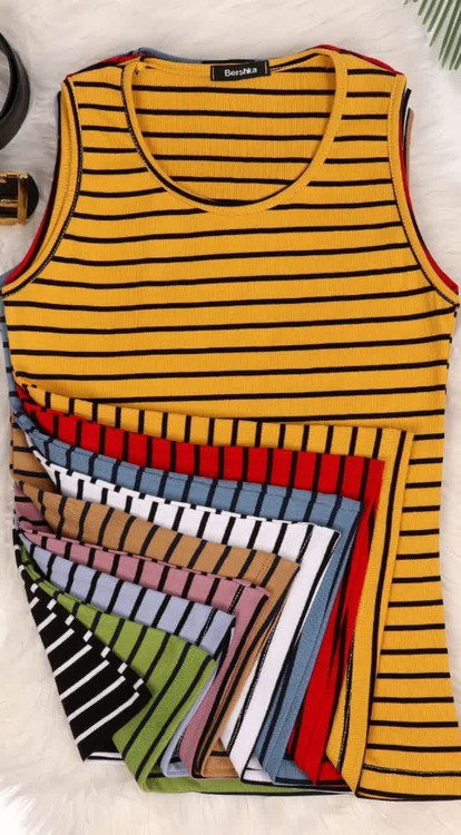 تاپ زنانه دخترانه راه راه برشکا جنس پنبه کبریتی نرم و لطیف با کشسانی عالی و تنخور بسیار سبک و راحت