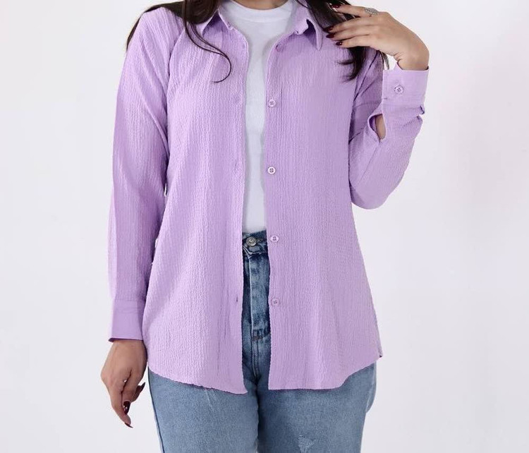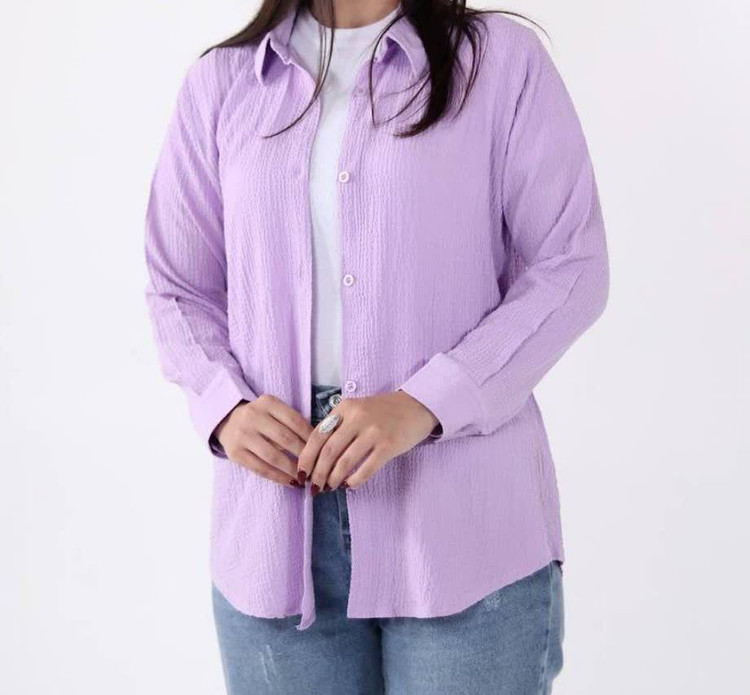 🔵 شومیز یقه مردانه آستین بلند مچی دکمه خور با تنخور ساده و شیک