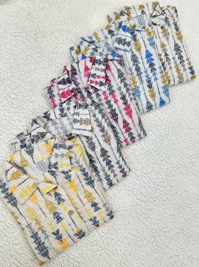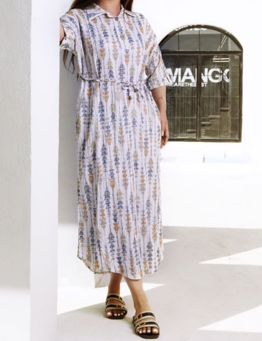 ساحلی یقه دار آستین پاکتی جنس دبل کراش چروک بسیار سبک و خنک با تنخور فوق العاده شیک و راحت