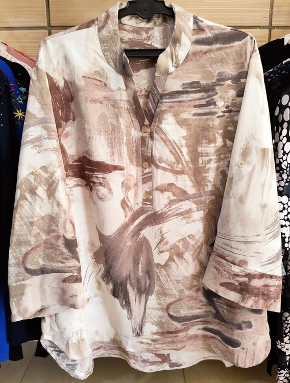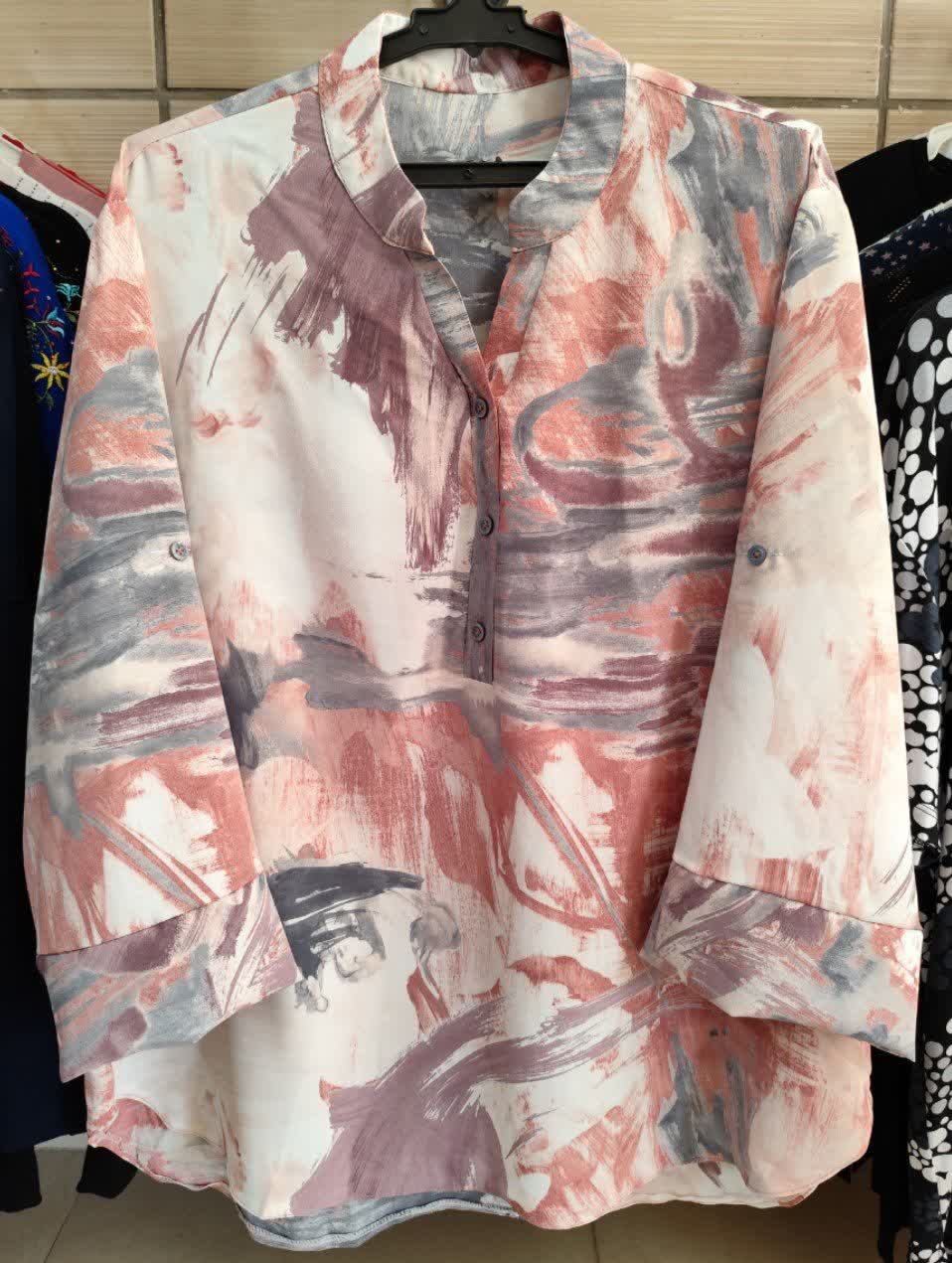 شومیز آبرنگی قواره بزرگ یقه هفت جنس کرپ اندونزی بسیار سبک خنک و راحت با تنخور فوق العاده شیک