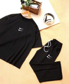 ست زنانه دخترانه تیشرت لش شلوار بگ جیب دار کمر کش چاپ دو نایک با رنگ بندی و تنخور بسیار شیک