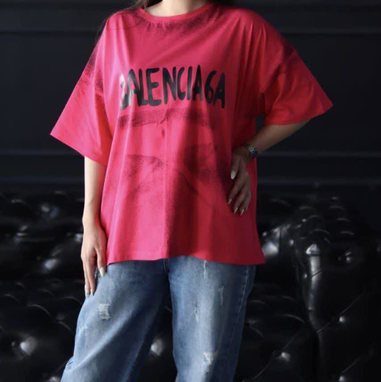 تیشرت باکسی لش قواره بزرگ جنس سوپر نخ پنبه نرم و لطیف چاپ BALENCIAGA با تنخور بسیار شیک
