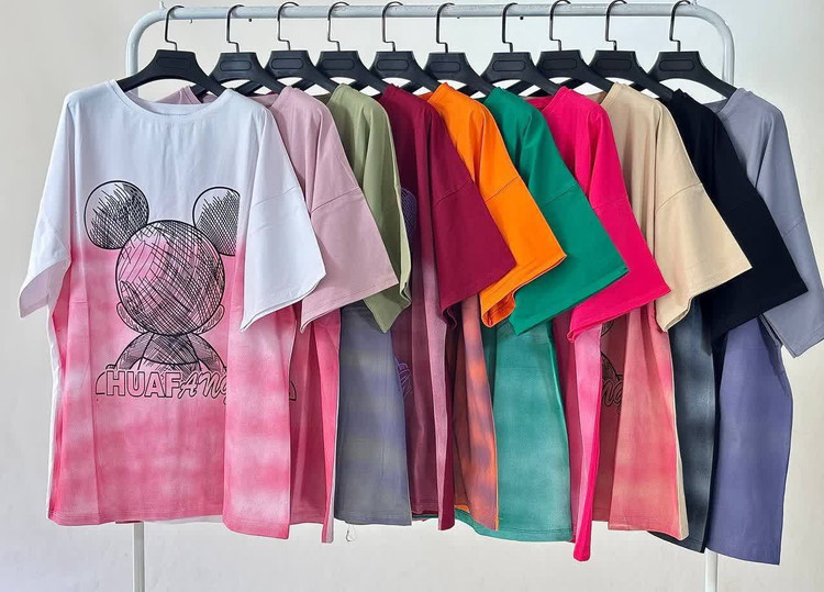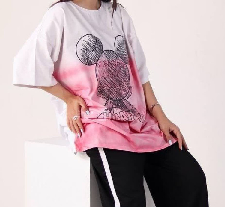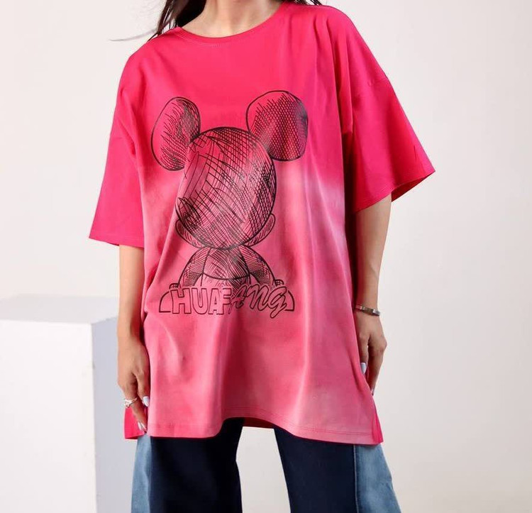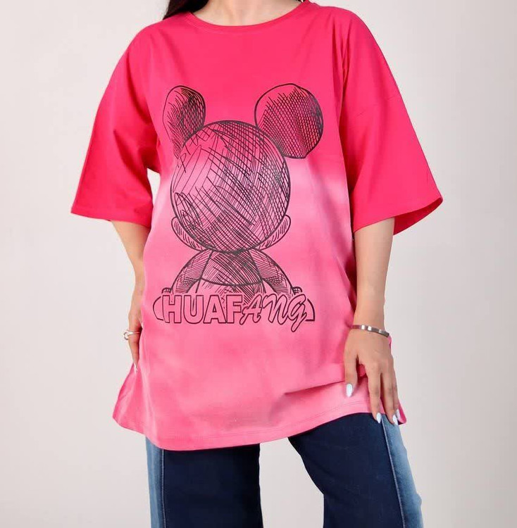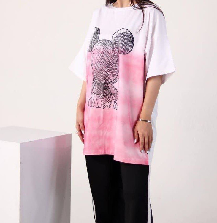 تیشرت لانگ لش قواره بزرگ جنس سوپر نخ پنبه نرم و لطیف جلو چاپ فانتزی با تنخور قشنگش