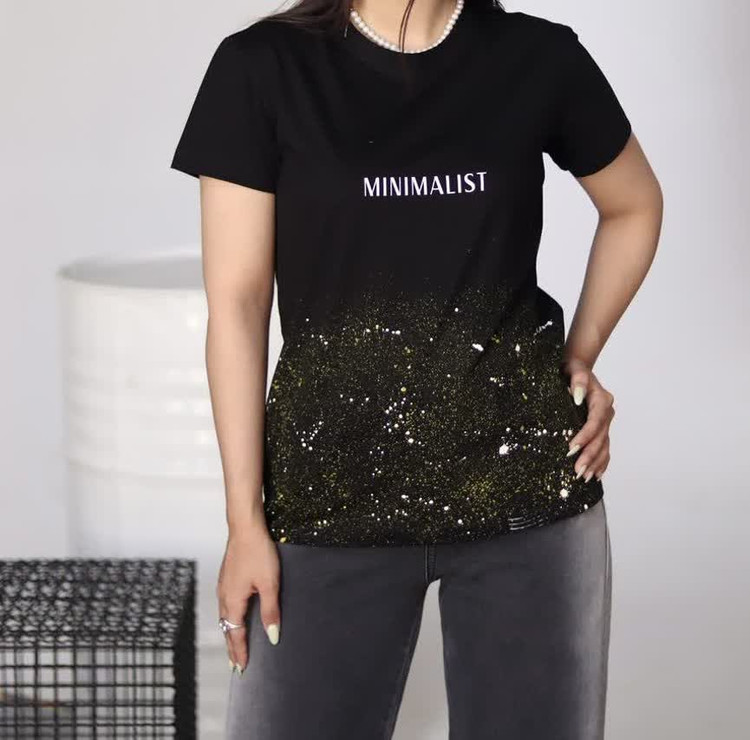 تیشرت زنانه دخترانه جنس سوپر نخ پنبه نرم و لطیف چاپ MINIMALIST با تنخور بسیار شیک