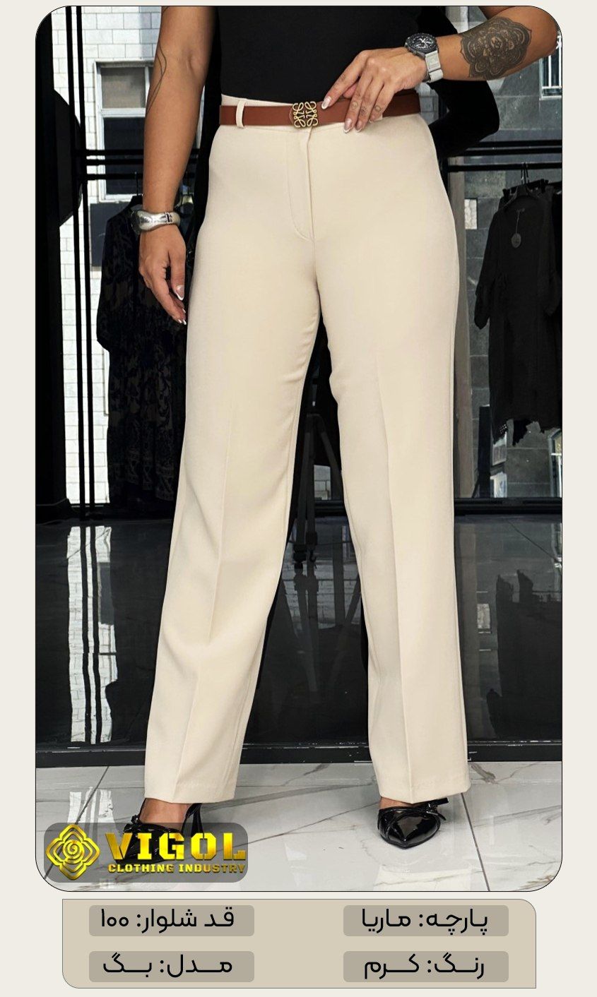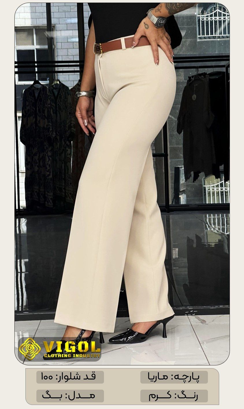 شلوار زنانه دخترانه بگ جنس ماریا کمری زیپ و دکمه برند ویگل با تنخور بسیار سبک راحت و شیک