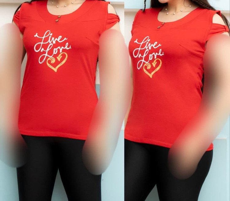 🔵 تاپ تیشرت یقه گرد دو دکمه برش دار (بغل کار روی سینه ساسون دوخته شده) آستین پاپیونی چاپ live love با تنخور فوق العاده شیک