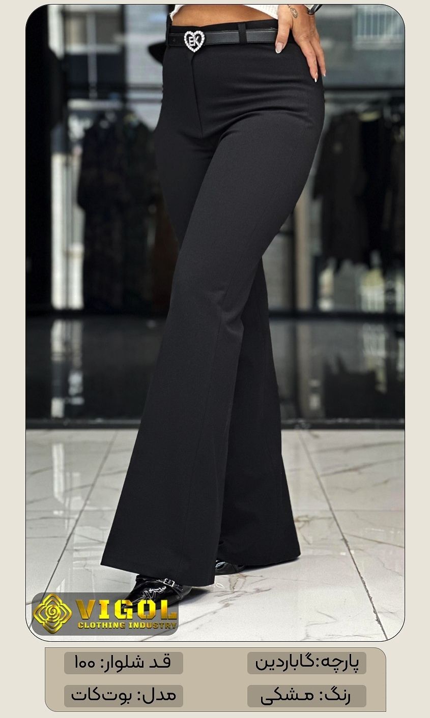 شلوار زنانه دخترانه مجلسی بوت کات کمری زیپ و دکمه جنس گاباردین برند ویگل با ضمانت و تنخور فوق العاده شیک