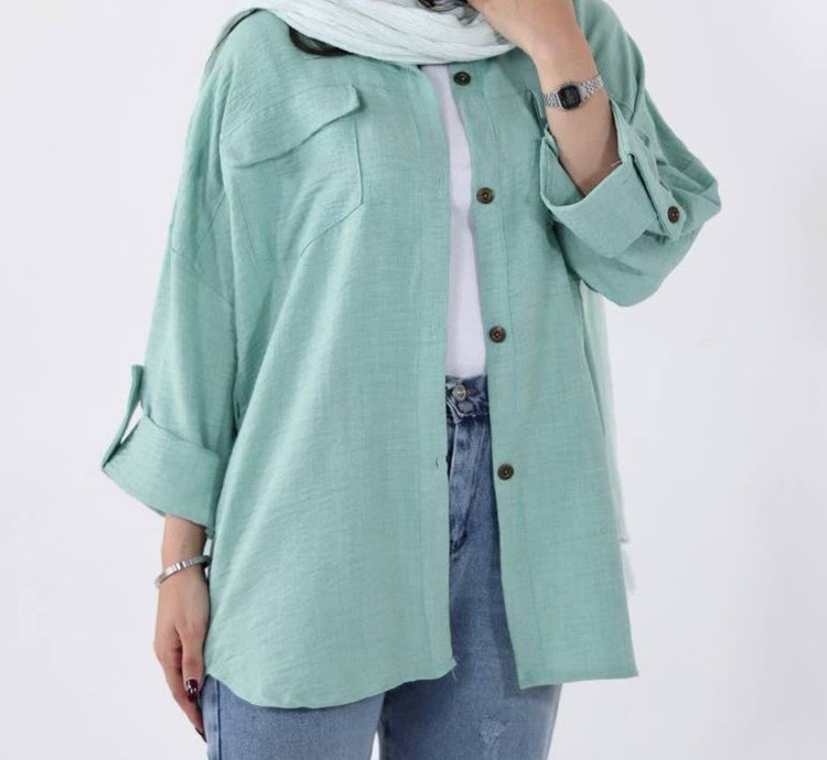 مانتو یقه مردانه دو جیب آستین سه ربع پاکتی جنس صوفیا بسیار سبک و راحت با تنخور ساده و شیک