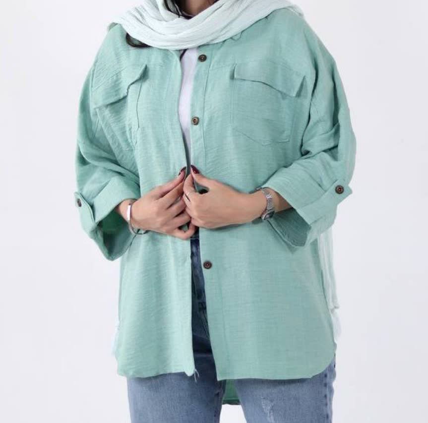 🔵 مانتو یقه مردانه دو جیب، آستین سه ربع پاکتی با تنخور ساده و شیک