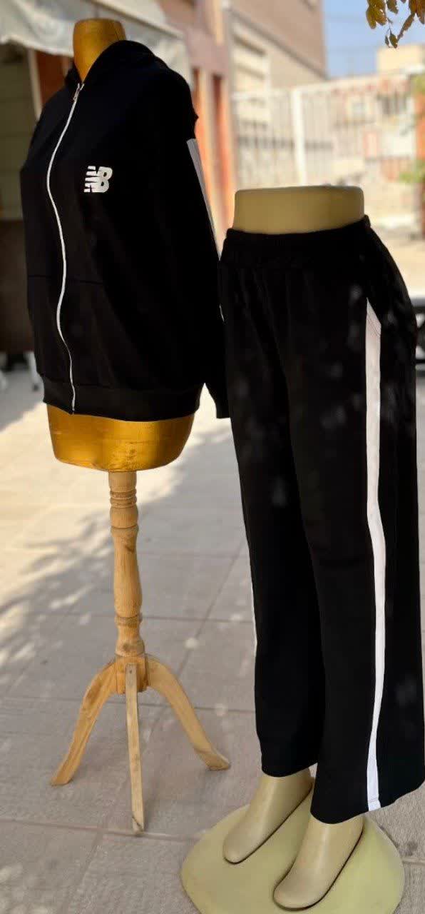🔵 ست (هودی) سویشرت جلو جیب و کلاهدار + شلوار بگ تک نوار چاپ NB با تنخور بسیار شیک