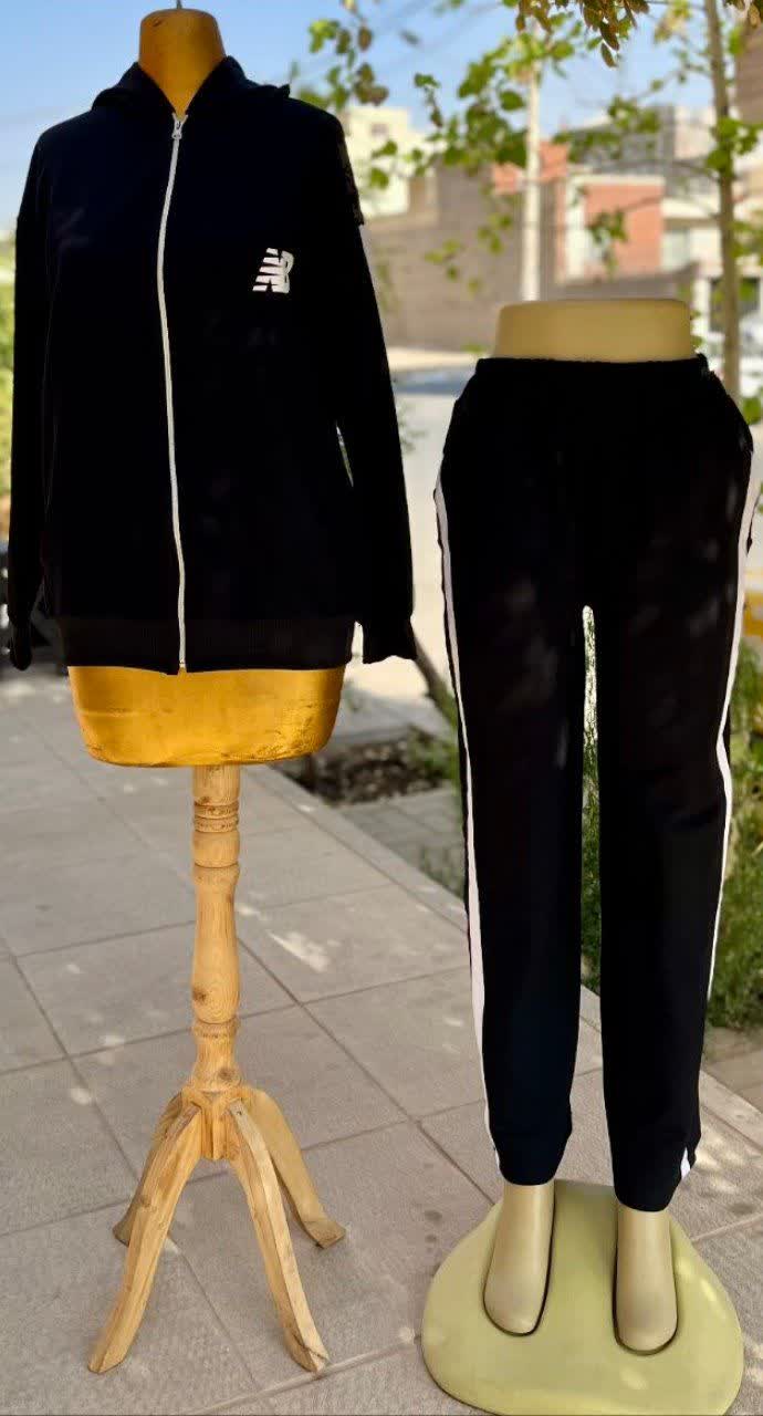 🔵 ست (هودی) سویشرت جلو جیب و کلاهدار + شلوار بگ تک نوار چاپ NB با تنخور بسیار شیک