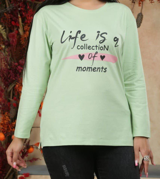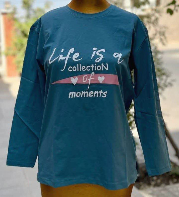 بلوز زنانه دخترانه آستین بلند چاپ Life جنس پنبه درجه یک با تنخور ساده و شیک