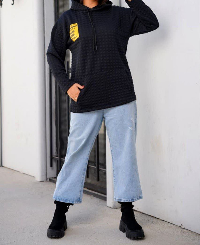 🔵 هودی اسپورت کلاهدار طرحدار جلو استیکر، با تنخور جذابش
