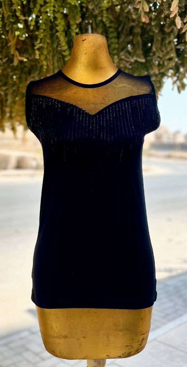تاپ زنانه دخترانه یقه تور دلبری جنس ویسکوز (کشی) با تنخور بسیار شیک و جذاب