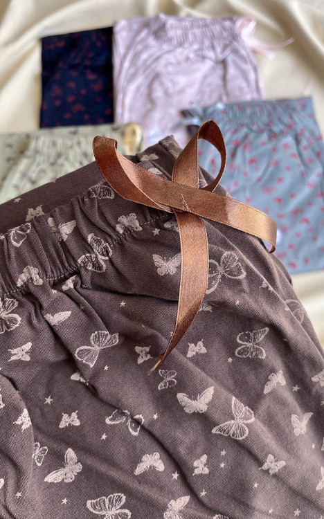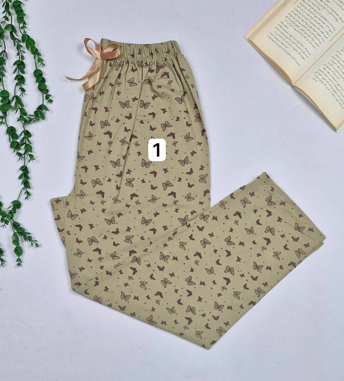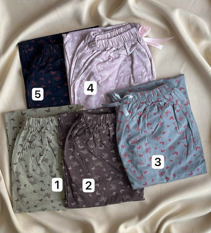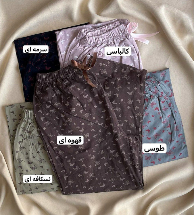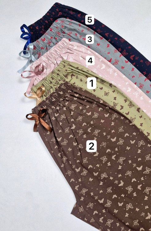 🟣 شلوار زنانه دخترانه راحتی راسته قواره بزرگ کمرکش پاپیونی تمام چاپ پروانه