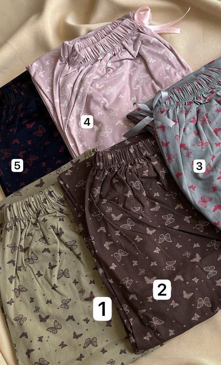 🟣 شلوار زنانه دخترانه راحتی راسته قواره بزرگ کمرکش پاپیونی تمام چاپ پروانه