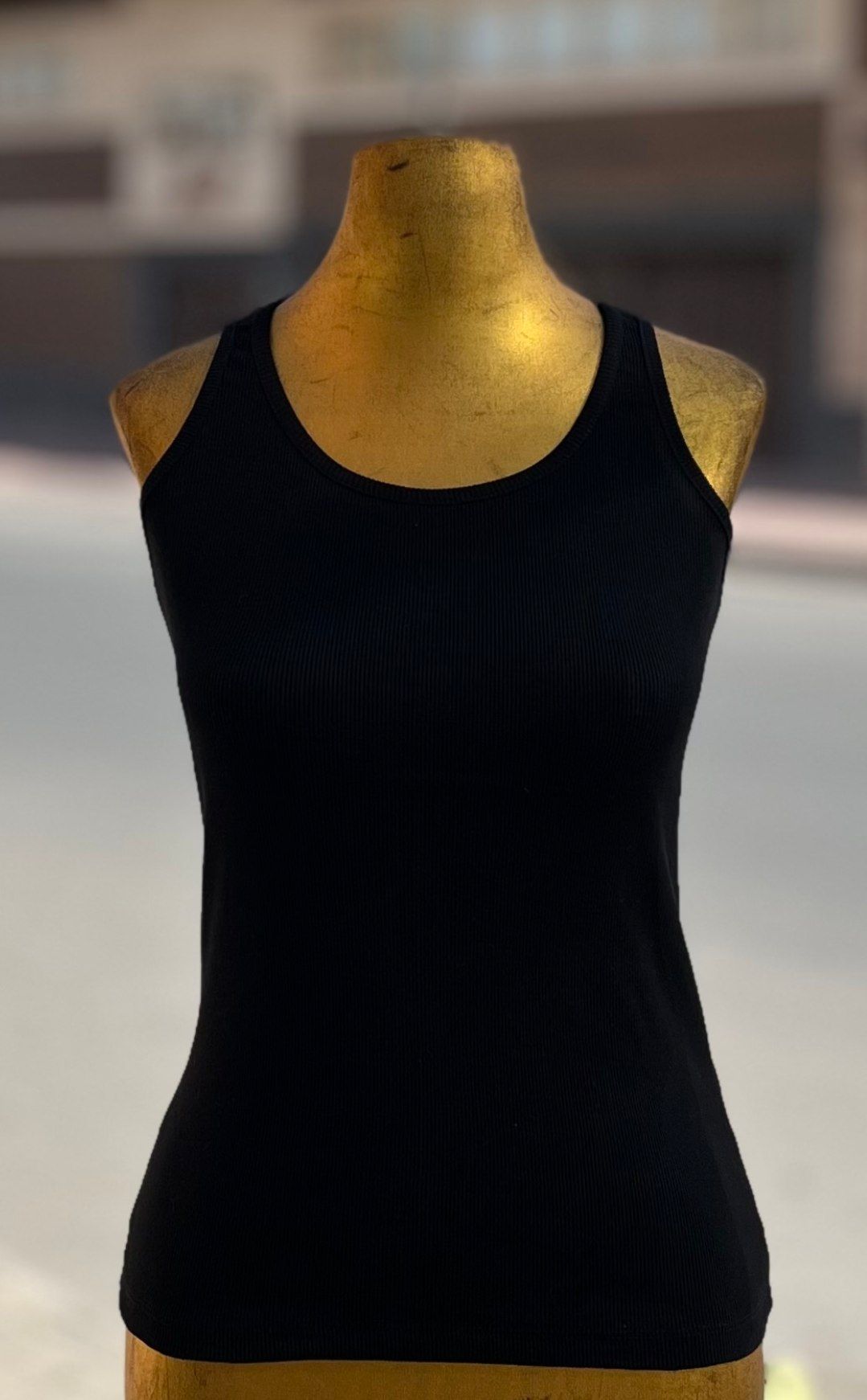 🔵 تاپ رکابی حلقه ای یقه گرد با تنخور ساده و شیک