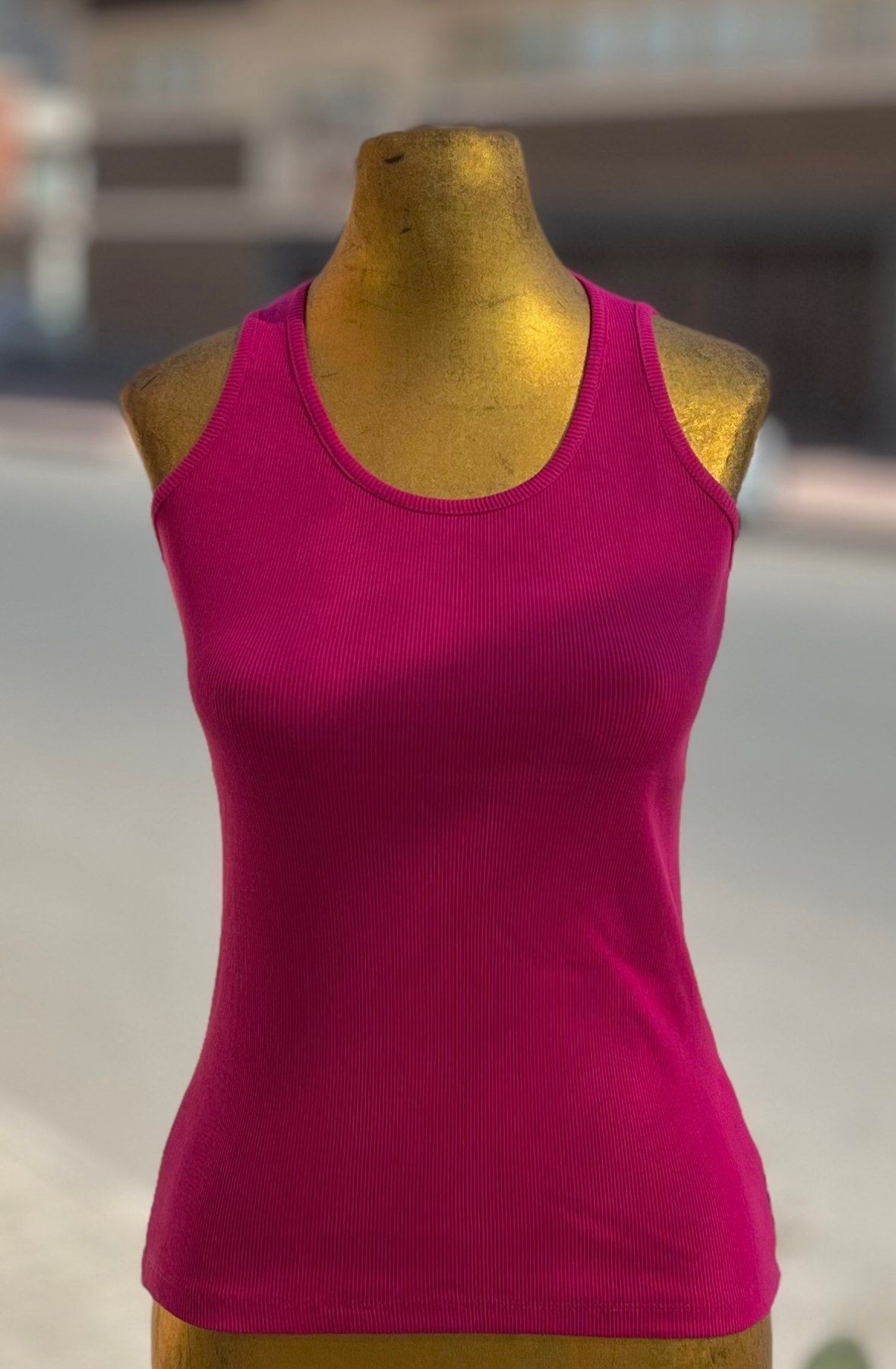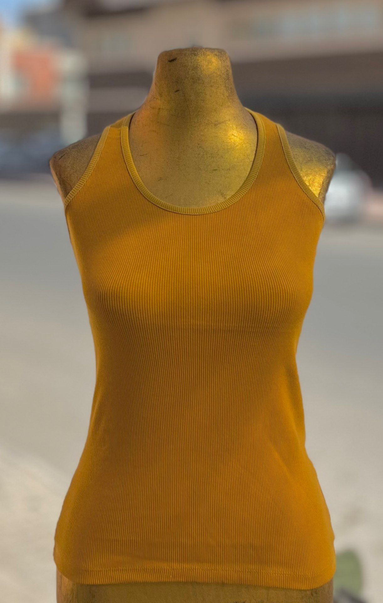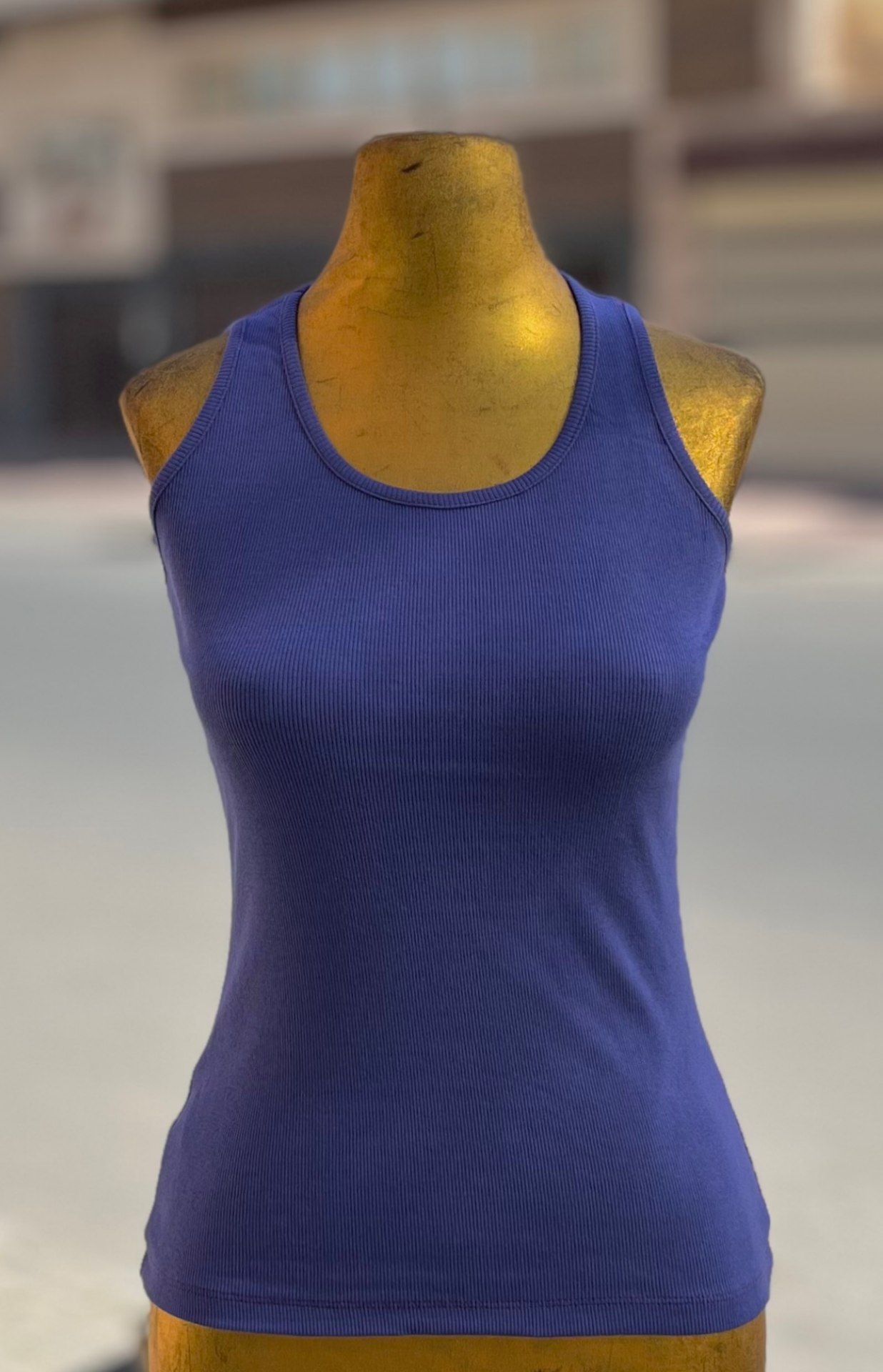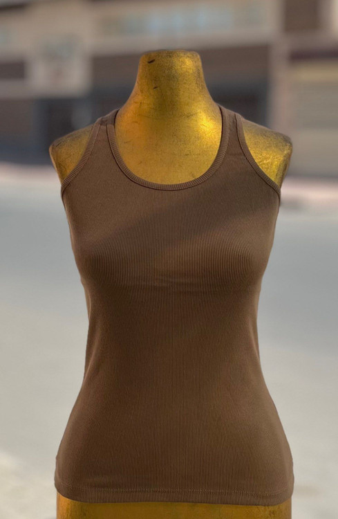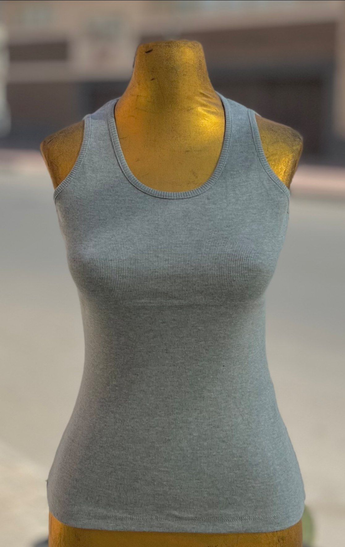 تاپ زنانه دخترانه رکابی حلقه ای یقه گرد جنس فانریپ پنبه کبریتی با تنخور ساده و شیک