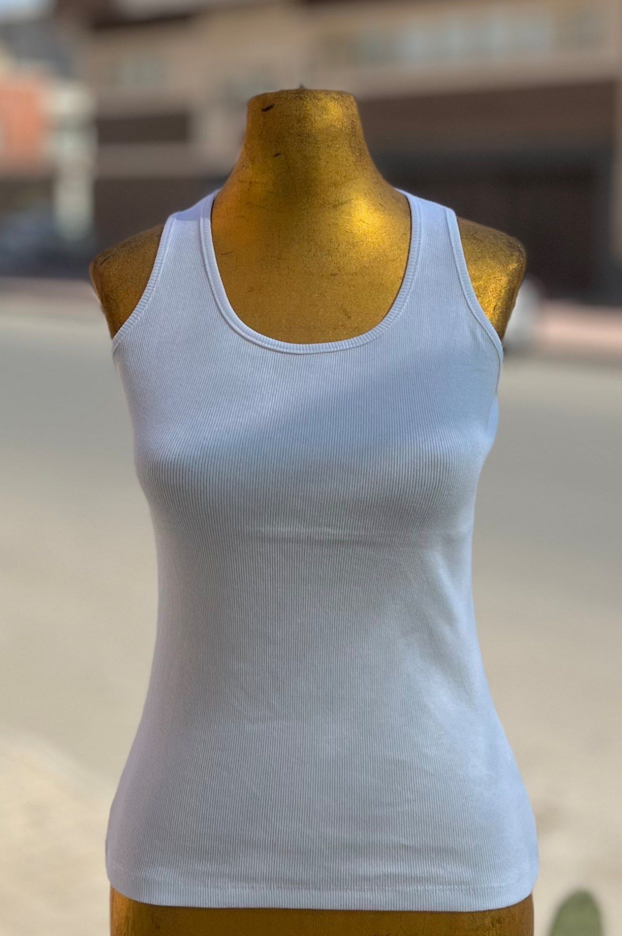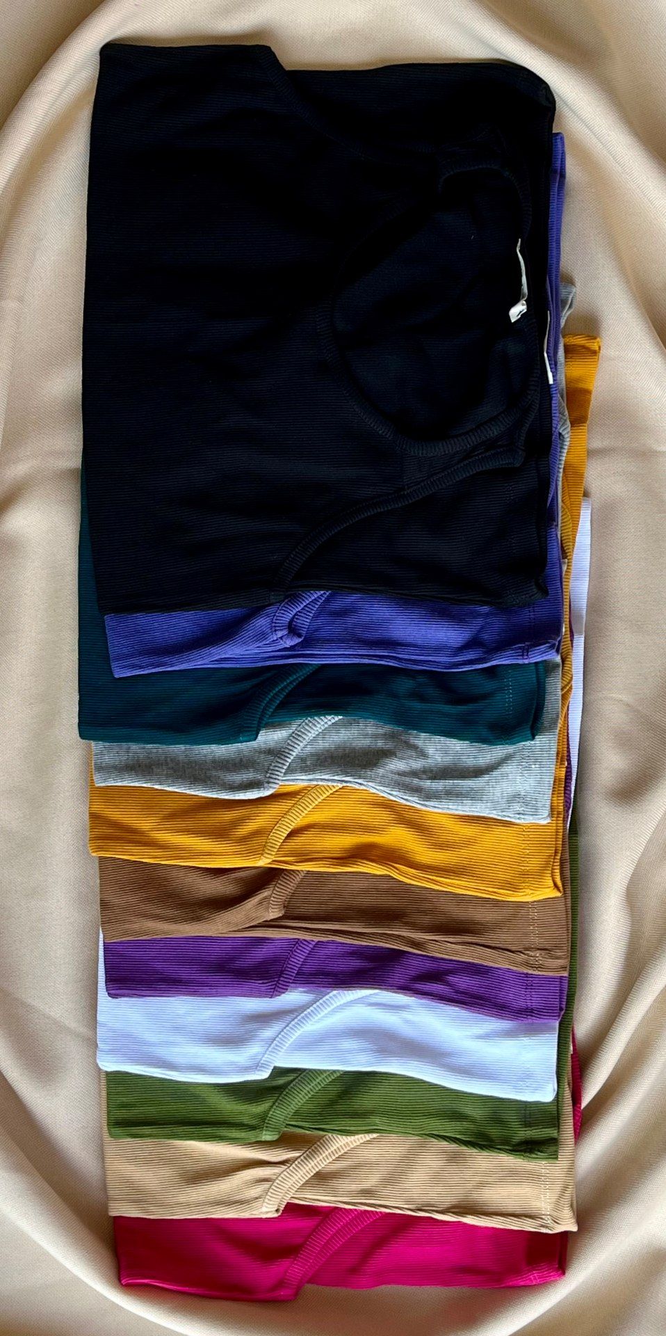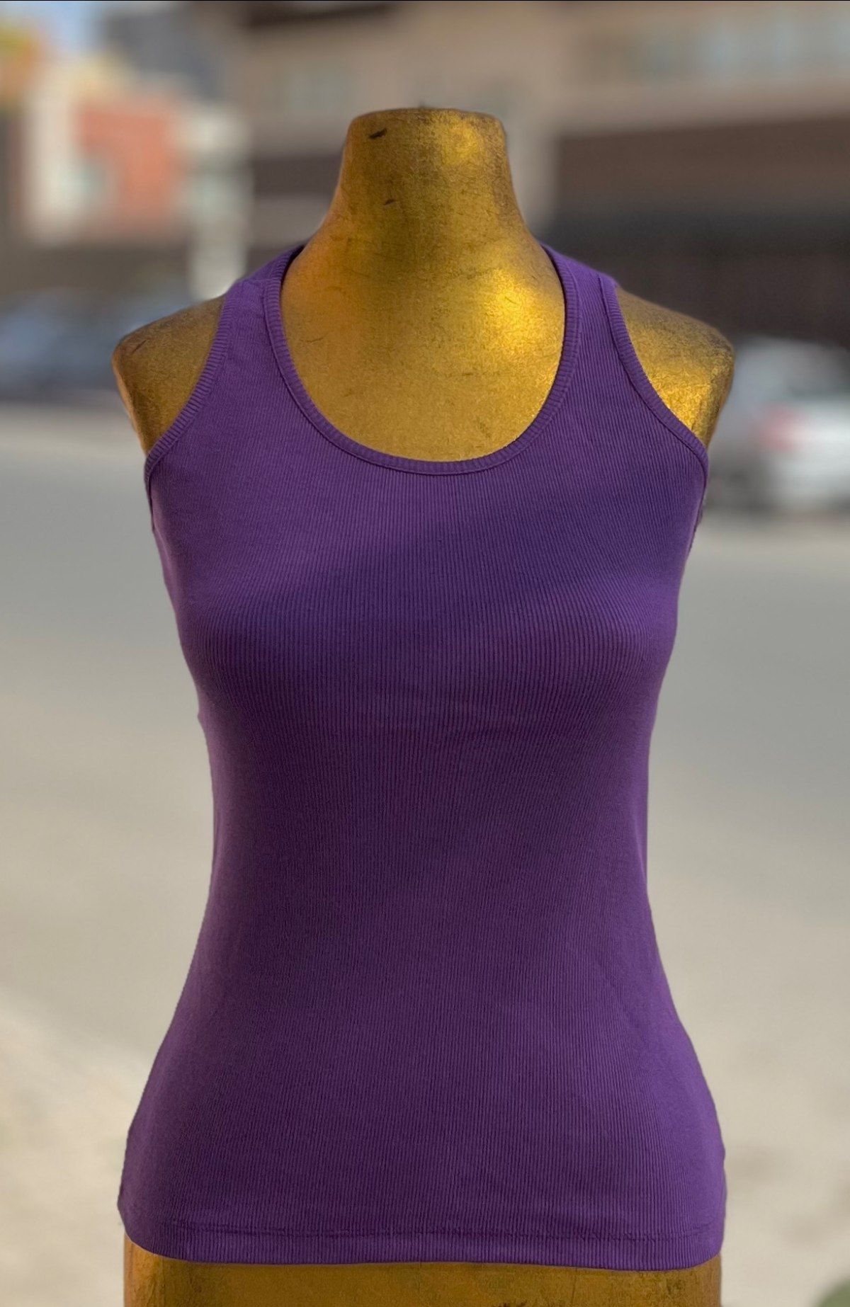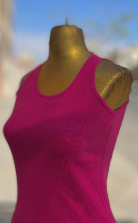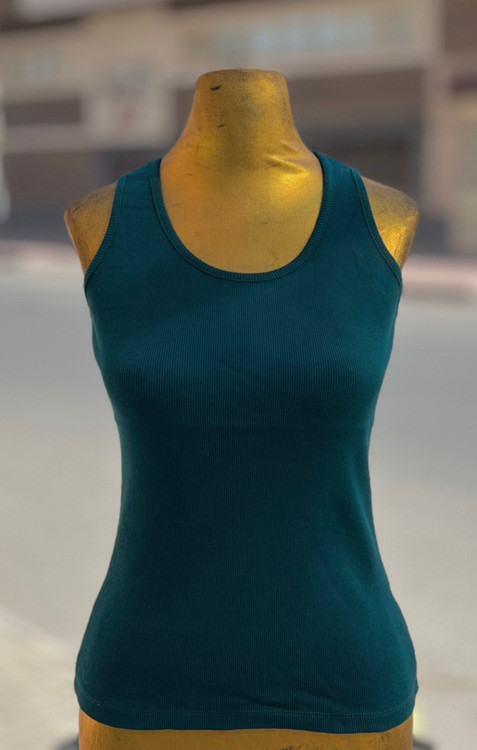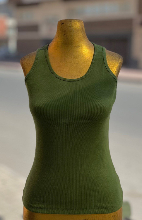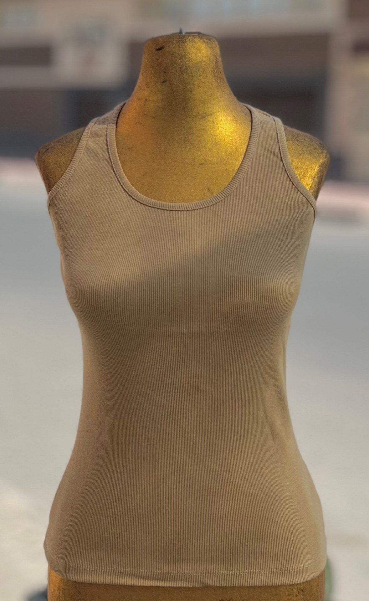 تاپ زنانه دخترانه رکابی حلقه ای یقه گرد جنس فانریپ پنبه کبریتی با تنخور ساده و شیک