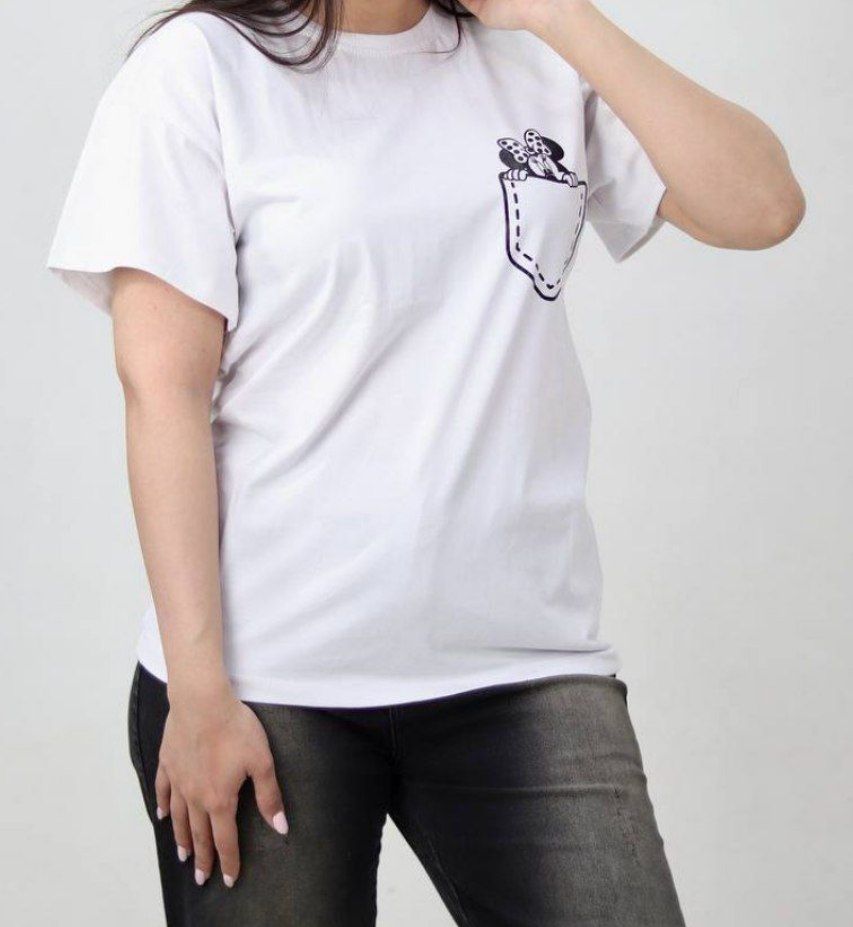 🔵 تیشرت زنانه دخترانه یقه گرد جلو چاپ فانتزی با تنخور ساده و شیک