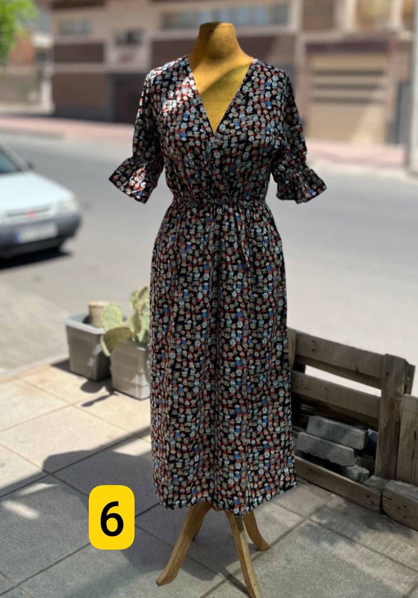 پیراهن ساحلی مدل رویال یقه هفت چپ و راستی آستین کوتاه کمر کش با تنخور فوق العاده شیک
