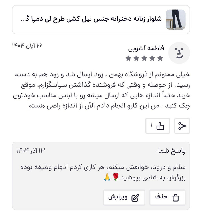 ✂️ سایز بندیش: از 38 تا 50 (اندازه های دقیق سایز مدنظرتون موقع ثبت سفارش براتون ارسال میشه)